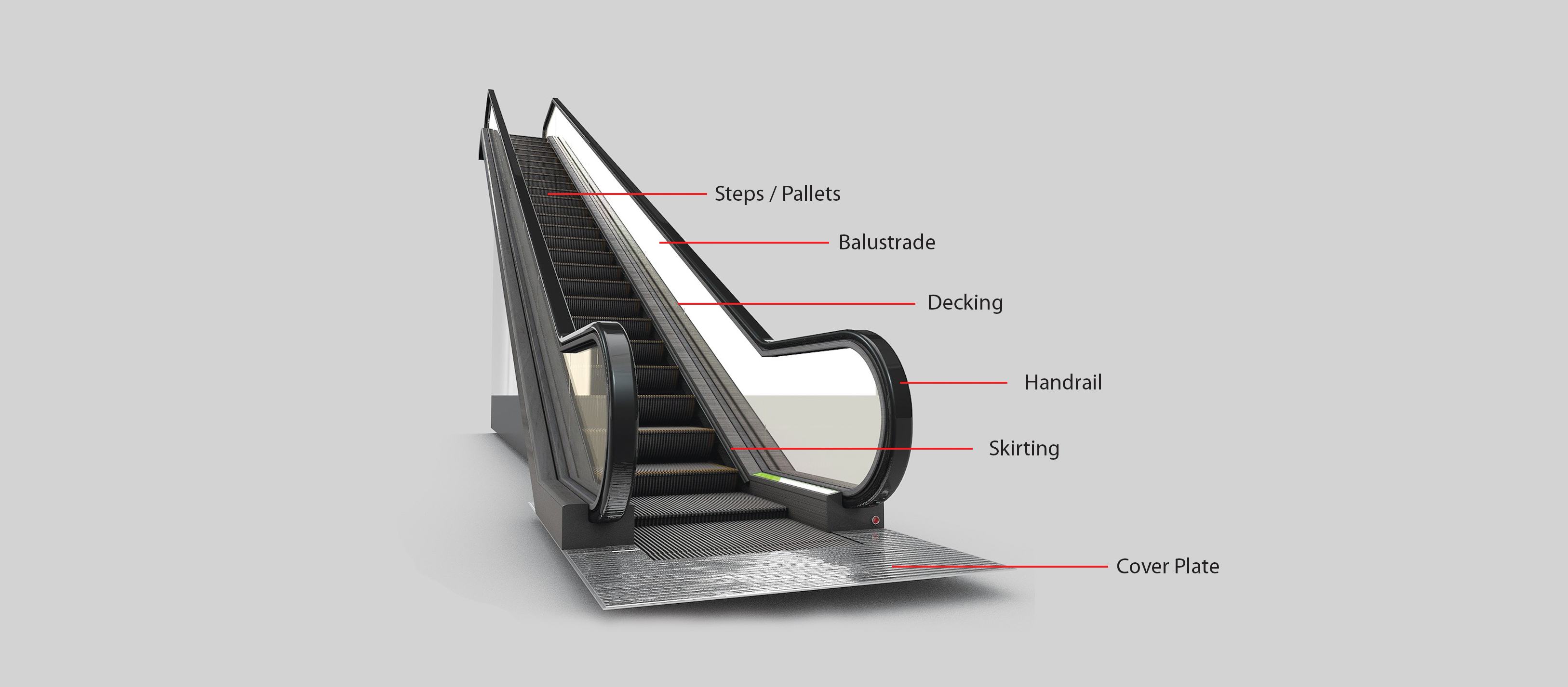 An escalator is a moving staircase for transporting people between floors of a building. It is generally agreed that an escalator is the most effi cient means to move large numbers of people between fl oors.