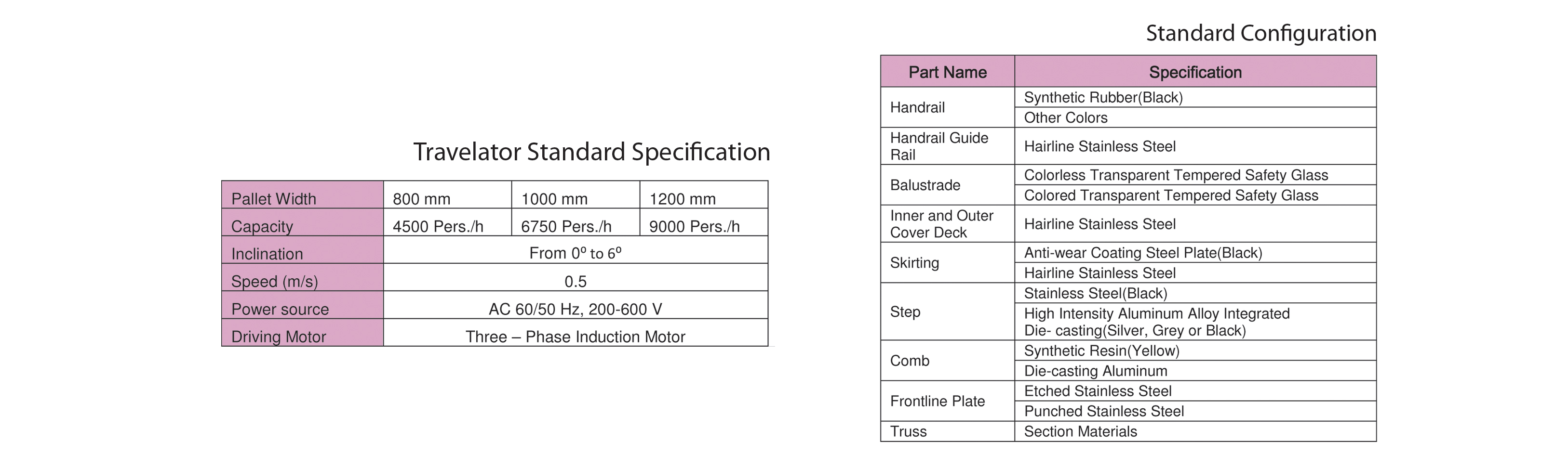 Travelators are designed to carry people safely, swiftly and comfortably. Travelators are generally provided in areas where people need to walk long distances with luggage, baggage carts or shopping carts. A Travelator is generally flat, but can be slightly inclined.